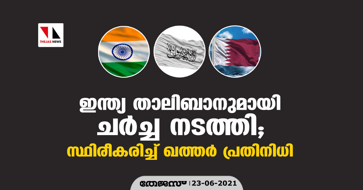ഇന്ത്യ താലിബാനുമായി ചര്ച്ച നടത്തി; സ്ഥിരീകരിച്ച് ഖത്തര് പ്രതിനിധി