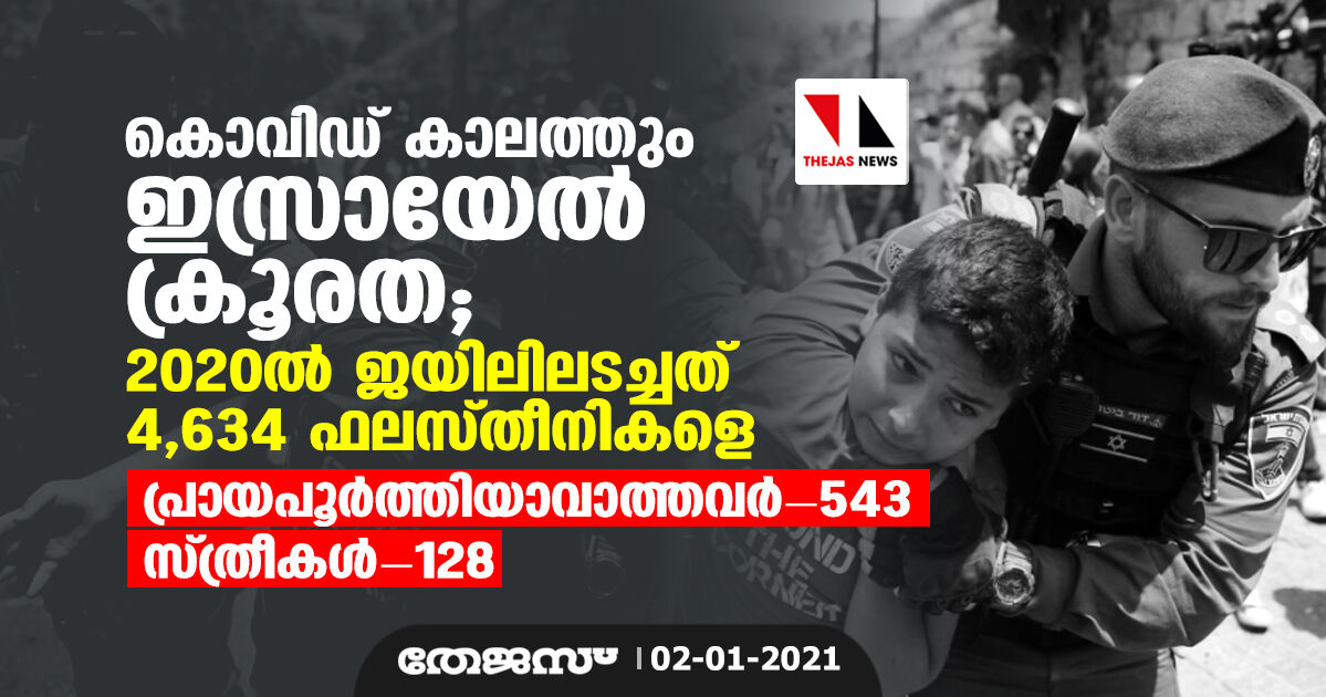 കൊവിഡ് കാലത്തും ഇസ്രായേല് ക്രൂരത; 2020ല് ജയിലിലടച്ചത് 4,634 ഫലസ്തീനികളെ