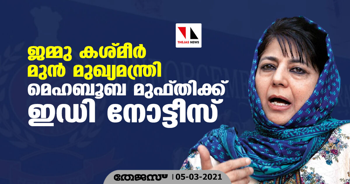 ജമ്മു കശ്മീര് മുന് മുഖ്യമന്ത്രി മെഹബൂബ മുഫ്തിക്ക് ഇ ഡി നോട്ടീസ്