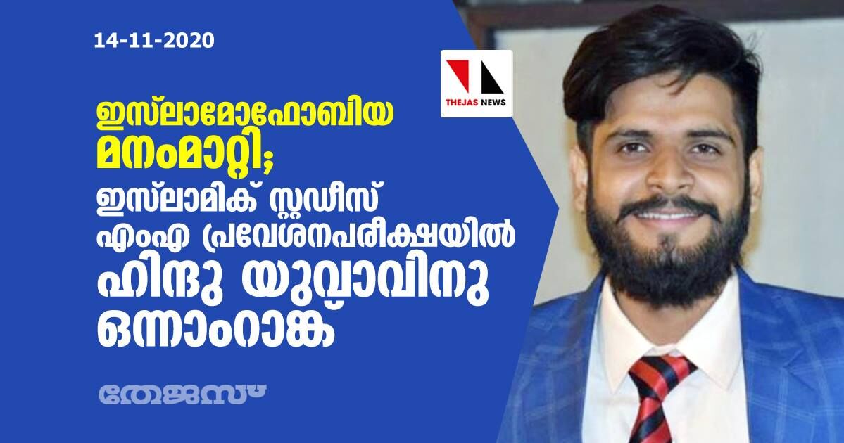 ഇസ്ലാമോഫോബിയ മനംമാറ്റി; ഇസ്ലാമിക് സ്റ്റഡീസ് എംഎ പ്രവേശനപരീക്ഷയില് ഹിന്ദു യുവാവിനു ഒന്നാംറാങ്ക്