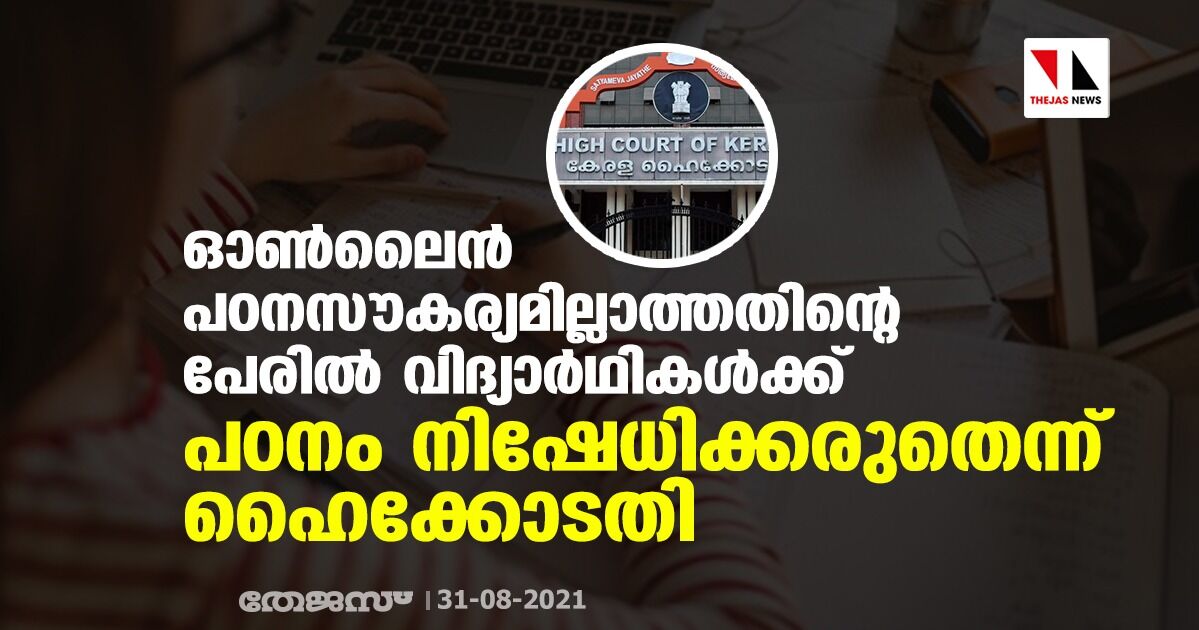 ഓണ് ലൈന് പഠനസൗകര്യമില്ലാത്തതിന്റെ പേരില് വിദ്യാര്ഥികള്ക്ക് പഠനം നിഷേധിക്കരുതെന്ന് ഹൈക്കോടതി