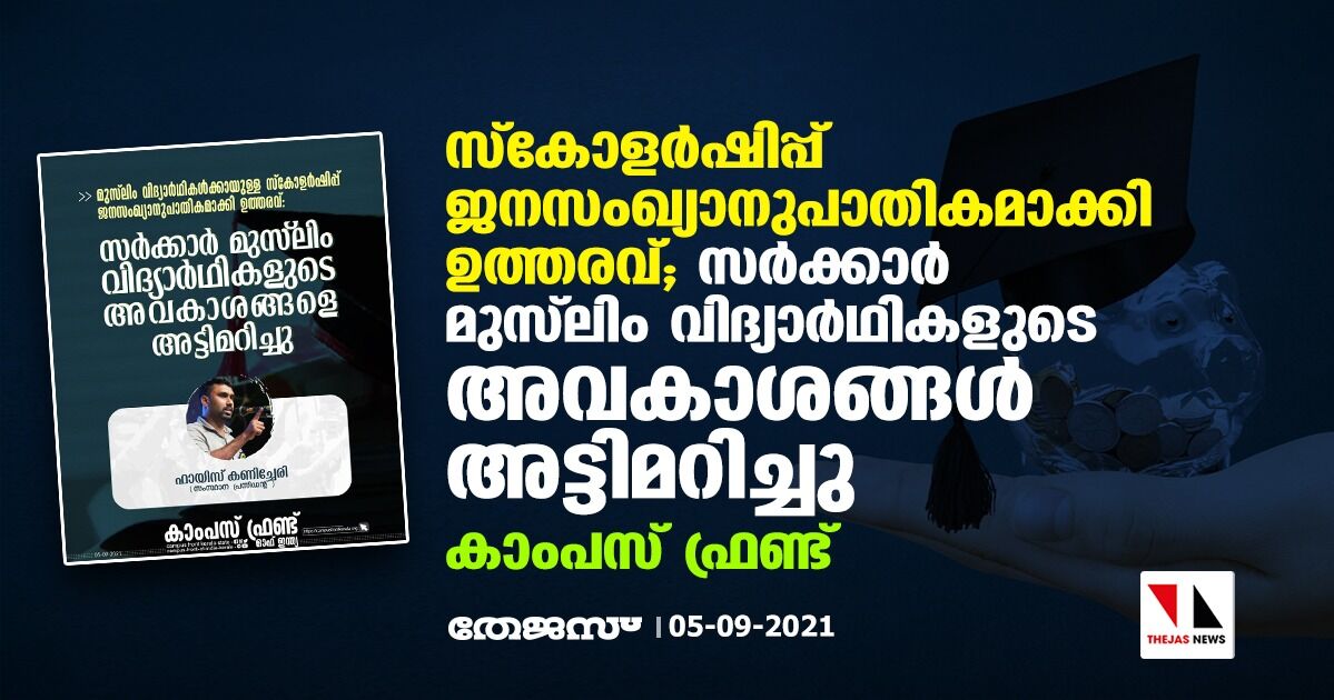 സ്കോളര്ഷിപ്പ് ജനസംഖ്യാനുപാതികമാക്കി ഉത്തരവ്; സര്ക്കാര് മുസ്ലിം വിദ്യാര്ഥികളുടെ അവകാശങ്ങള് അട്ടിമറിച്ചു: കാംപസ് ഫ്രണ്ട്