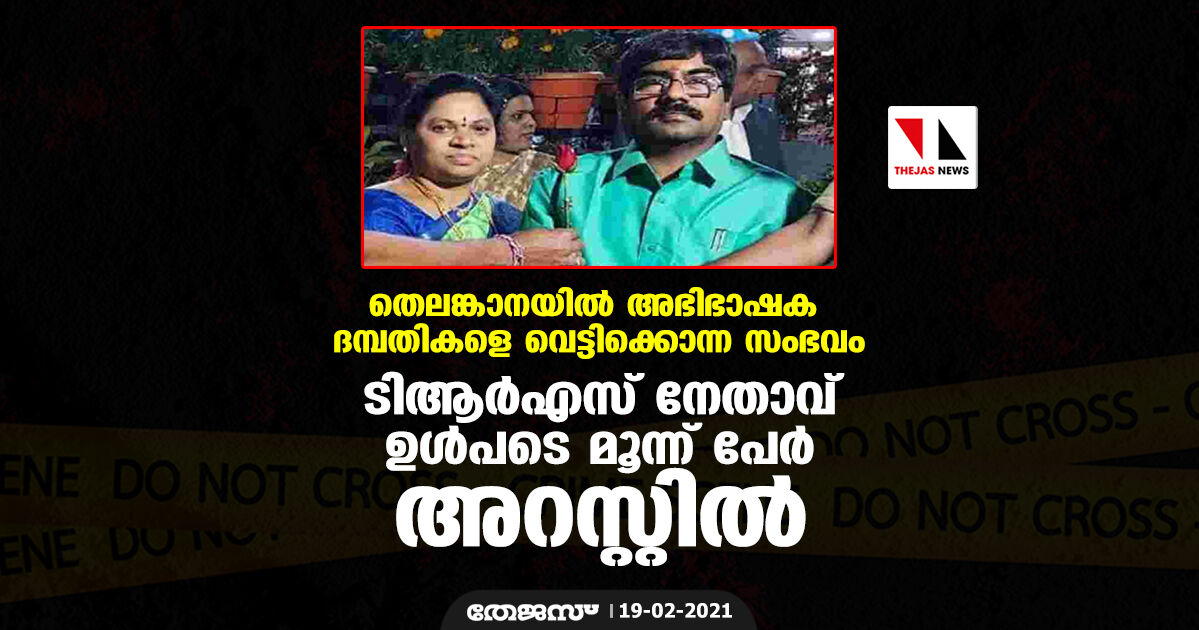 തെലങ്കാനയില് അഭിഭാഷക ദമ്പതികളെ വെട്ടിക്കൊന്ന സംഭവം: ടിആര്എസ് നേതാവ് ഉള്പടെ മൂന്ന് പേര് അറസ്റ്റില്
