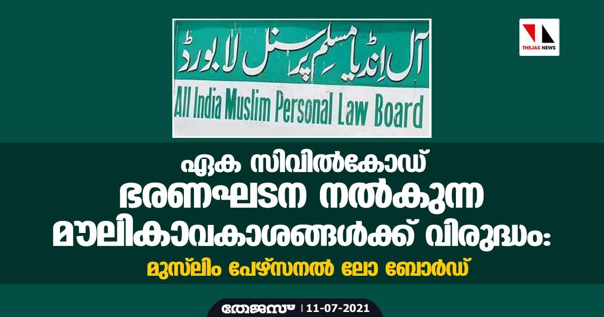 ഏക സിവില്കോഡ് ഭരണഘടന നല്കുന്ന മൗലികാവകാശങ്ങള്ക്ക് വിരുദ്ധം: മുസ്ലിം പേഴ്സനല് ലോ ബോര്ഡ്