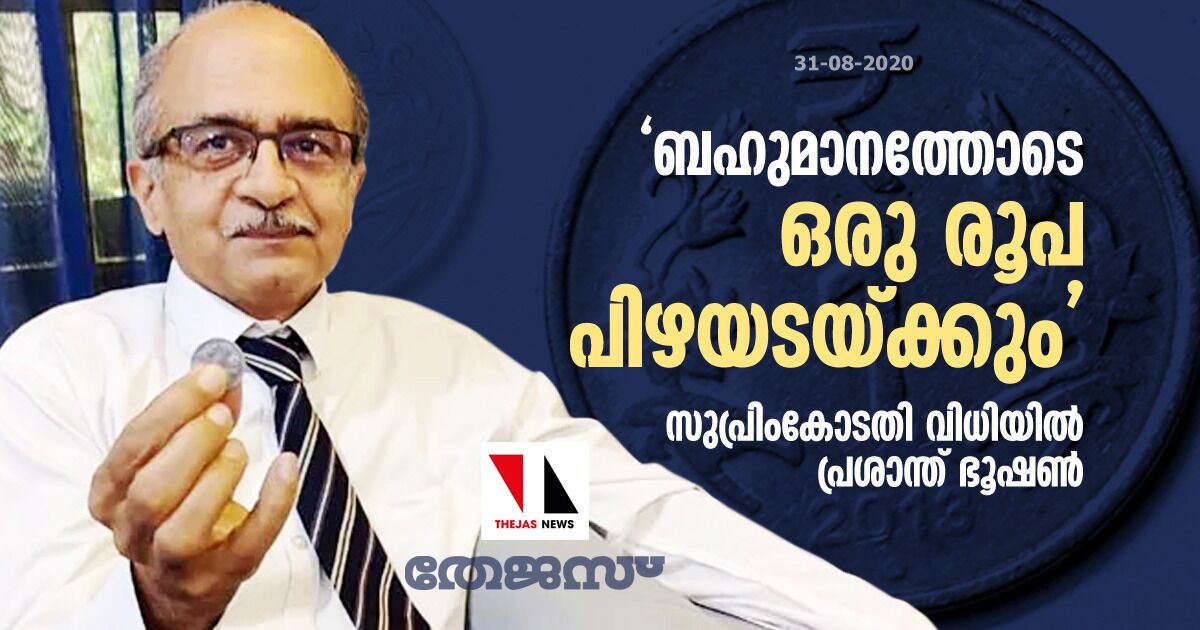 'ബഹുമാനത്തോടെ ഒരു രൂപ പിഴയടയ്ക്കും'; സുപ്രിംകോടതി വിധിയില് പ്രശാന്ത് ഭൂഷണ്