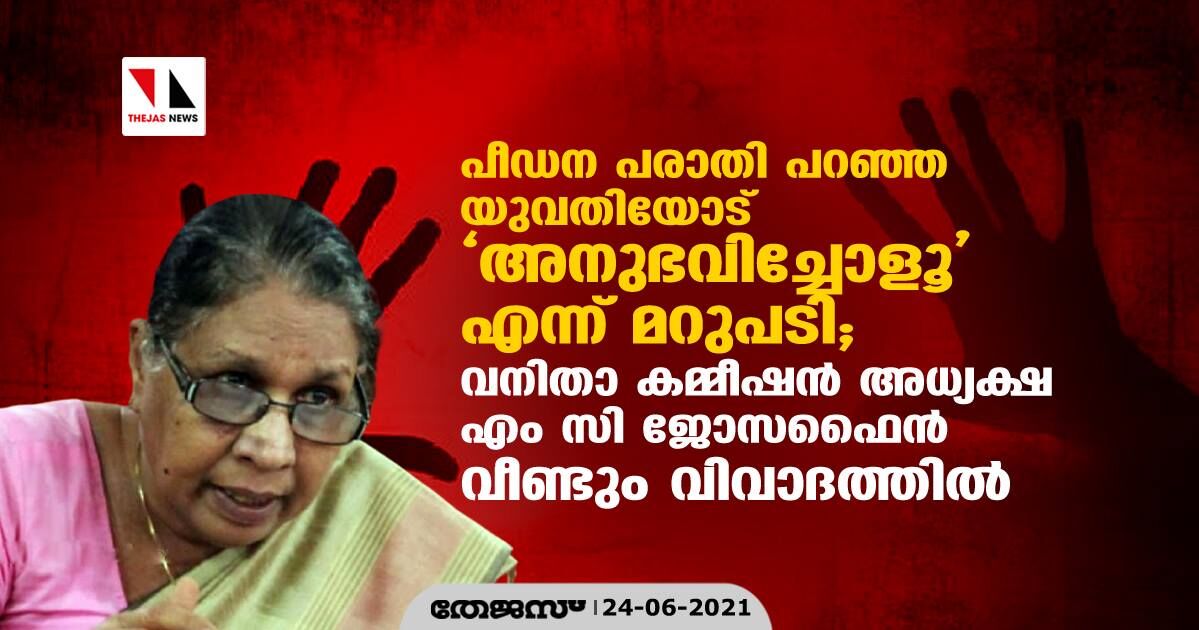 പീഢന പരാതി പറഞ്ഞ യുവതിയോട് 'അനുഭവിച്ചോളൂ' എന്ന് മറുപടി; വനിതാ കമ്മീഷന് അധ്യക്ഷ എം സി ജോസഫൈന് വീണ്ടും വിവാദത്തില്