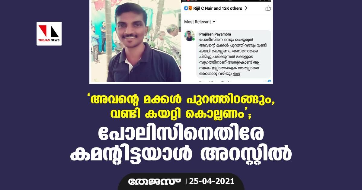 'അവന്റെ മക്കള് പുറത്തിറങ്ങും, വണ്ടി കയറ്റി കൊല്ലണം'; പോലിസിനെതിരേ കമന്റിട്ടയാള് അറസ്റ്റില്