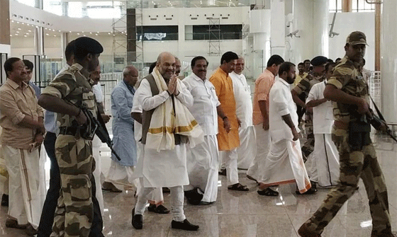 ഉദ്ഘാടനത്തിന് മുന്നേ കണ്ണൂര് വിമാനത്താവളത്തില് വിമാനമിറങ്ങി അമിത് ഷാ