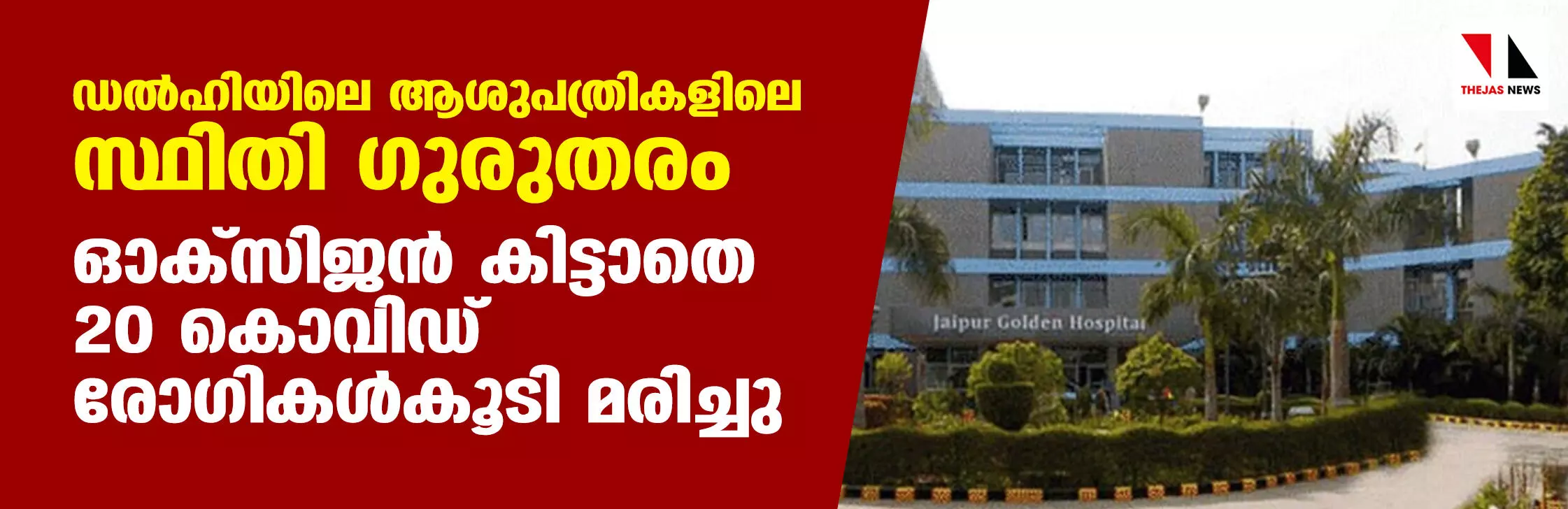 ഡല്ഹിയിലെ ആശുപത്രികളിലെ സ്ഥിതി ഗുരുതരം; ഓക്സിജന് കിട്ടാതെ 20 കൊവിഡ് രോഗികള്കൂടി മരിച്ചു