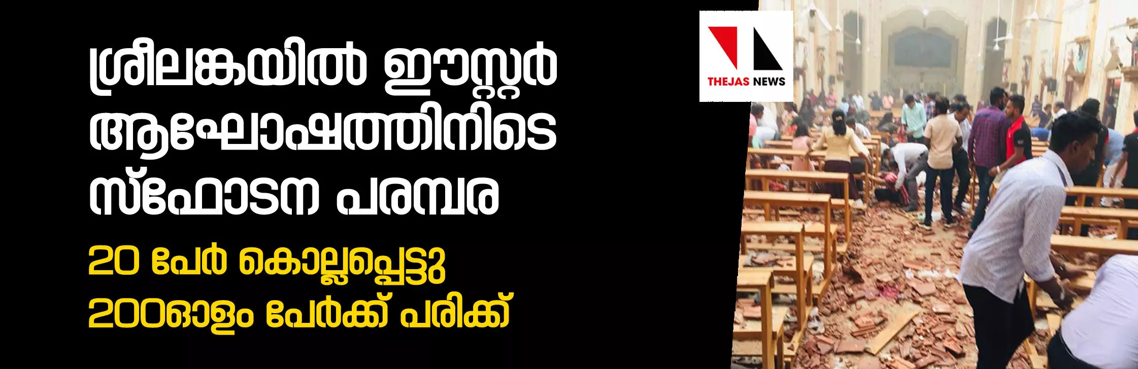 ശ്രീലങ്കയില് ഈസ്റ്റര് ആഘോഷത്തിനിടെ സ്ഫോടന പരമ്പര; 20 പേര് കൊല്ലപ്പെട്ടു