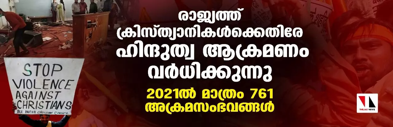 രാജ്യത്ത് ക്രിസ്ത്യാനികള്ക്കെതിരേ ഹിന്ദുത്വ ആക്രമണം വര്ധിക്കുന്നു; 2021ല് മാത്രം 761 അക്രമസംഭവങ്ങള്