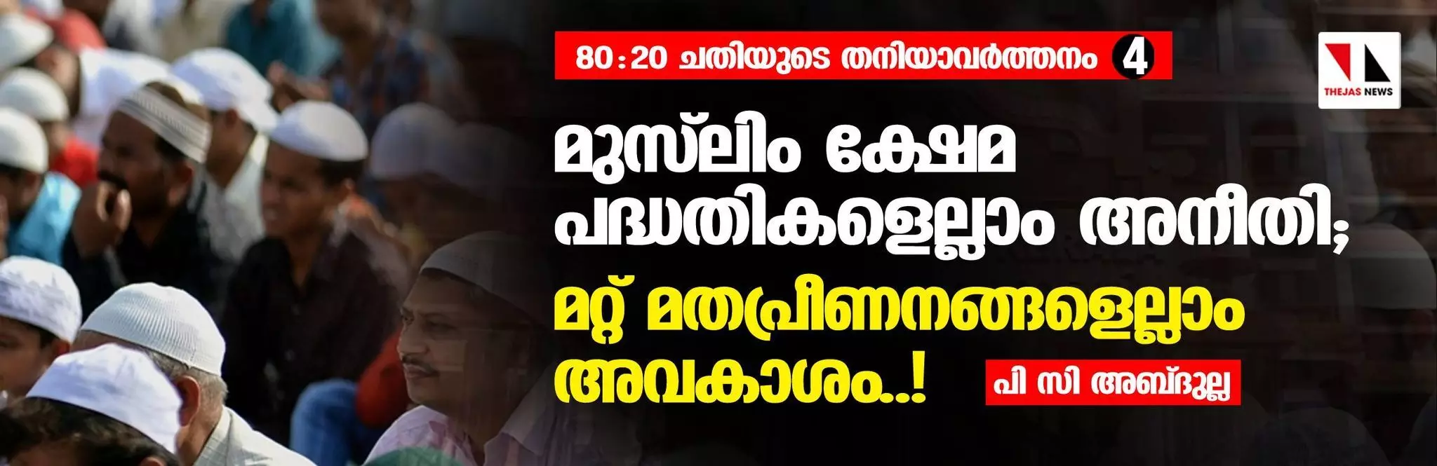 മുസ്ലിം ക്ഷേമ പദ്ധതികളുടെ പേരില് സര്ക്കാര് ഖജനാവില്നിന്ന് കടുക് ചോരുന്നത് കാണുന്നവരും പര്വതീകരിക്കുന്നവരും, ജനസംഖ്യാപരമായി മുസ്ലിംകളേക്കാള് താഴെയുള്ള ക്രൈസ്തവ സമുദായത്തിലേക്ക് സര്ക്കാര് ശമ്പളം വകയിലും ക്ഷേമപദ്ധതികള് വഴിയും പൊതുഖജനാവില്നിന്ന് വെള്ളാനകള്തന്നെ ചോരുന്നത് കണ്ടില്ലെന്ന് നടിക്കുന്നു. മുന്നാക്ക ഹിന്ദു, ക്രൈസ്തവ വിഭാഗങ്ങള്ക്കും പരിവര്ത്തിത ദലിത് ക്രൈസ്തവര്ക്കും മറ്റുമുള്ള പ്രത്യേക സര്ക്കാര് ക്ഷേമ പാക്കേജുകളെല്ലാം അവരുടെ ന്യായമായ അവകാശങ്ങളായി നിര്വചിക്കുന്നു.