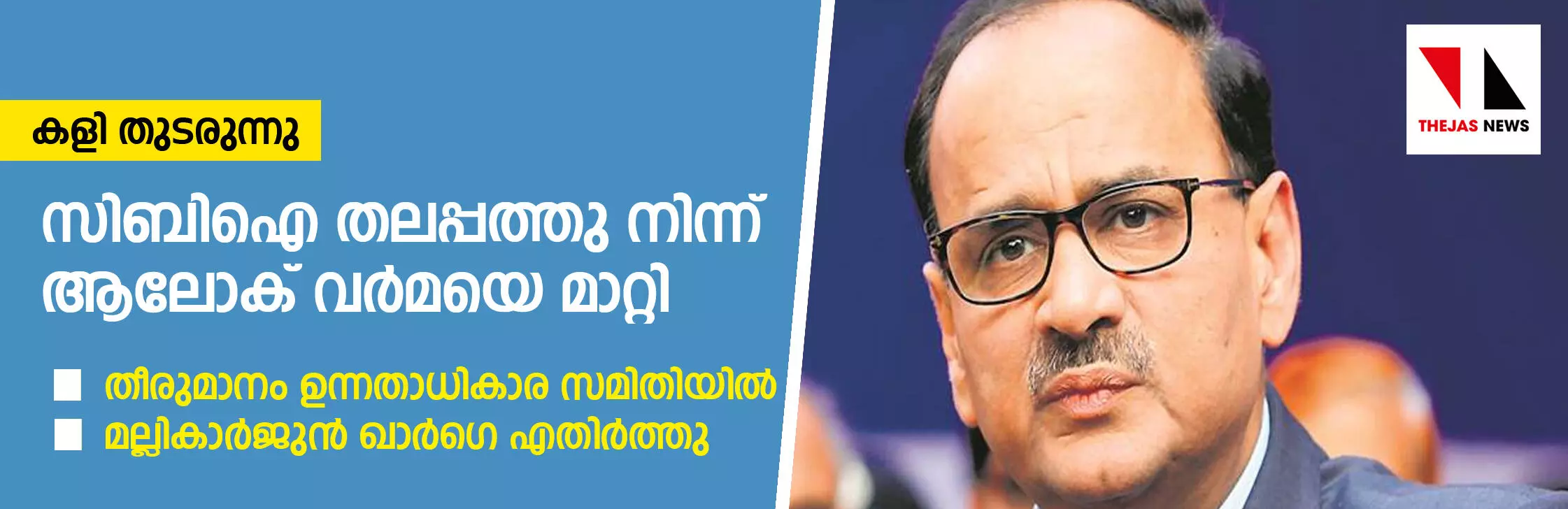 പ്രധാനമന്ത്രി നരേന്ദ്രമോദിയുടെ അധ്യക്ഷതയില് രണ്ടുദിവസമായി ചേര്ന്ന ഉന്നതാധികാര സമിതി യോഗമാണ് ആലോക് വര്മയെ തല്സ്ഥാനത്തുനിന്ന് നീക്കാന് തീരുമാനിച്ചത്.