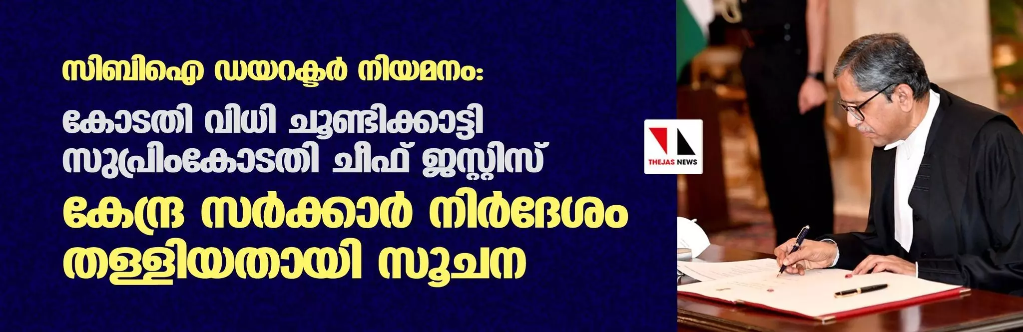 സിബിഐ ഡയറക്ടര് നിയമനം: കോടതി വിധി ചൂണ്ടിക്കാട്ടി സുപ്രിംകോടതി ചീഫ് ജസ്റ്റിസ് കേന്ദ്ര സര്ക്കാര് നിര്ദേശം തള്ളിയതായി സൂചന