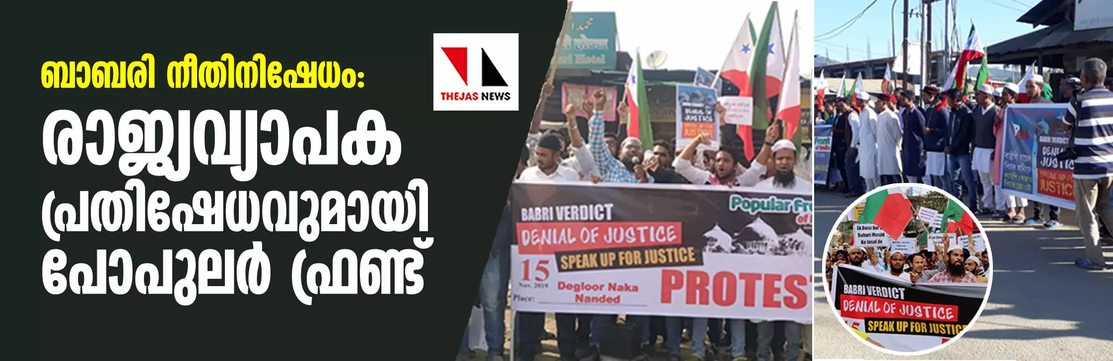 ന്യൂഡല്ഹി: ബാബരി മസ്ജിദ് കേസിലെ നീതിനിഷേധത്തിനെതിരേ രാജ്യവ്യാപക പ്രതിഷേധവുമായി പോപുലര് ഫ്രണ്ട് ഓഫ് ഇന്ത്യ. ബാബരി ഭൂമി കേസിലെ സുപ്രിംകോടതി വിധി നീതിയുക്തമല്ലെന്ന നിലപാടുയര്ത്തിയാണ് രാജ്യവ്യാപകമായി പോപുലര് ഫ്രണ്ട് പ്രതിഷേധ പരിപാടികള് നടത്തുന്നത്. രാജ്യതലസ്ഥാനമായ ന്യൂഡല്ഹിയിലെ ജന്തര് മന്ദര്, തമിഴ്നാട്ടിലെ ചെന്നൈ, കോയമ്പത്തൂര്, പശ്ചിമബംഗാളിലെ ബെര്ഹാംപോര്, മഹാരാഷ്ട്രയിലെ ബീദ്, ഔറന്ഗബാദ്, നന്ദേഡ്, മണിപ്പൂരിലെ ലിലോങ് തുടങ്ങിയ പ്രധാന നഗരങ്ങളില് പോപുലര് ഫ്രണ്ട് പ്രവര്ത്തകര് പ്രതിഷേധപ്രകടനങ്ങള് നടത്തി. കേരളത്തിലെ വിവിധ ജില്ലാകേന്ദ്രങ്ങളില് നടന്ന പ്രതിഷേധ വിളംബരത്തിലും ആയിരങ്ങള് അണിനിരന്നു. നീതിക്കുവേണ്ടി ശബ്ദമുയര്ത്തുകയെന്ന ജനാധിപത്യ ബോധത്തിലൂന്നിയ പ്രതിഷേധ പരിപാടികളില് വന് ജനകീയ പങ്കാളിത്തമാണ് അനുഭവപ്പെട്ടത്.