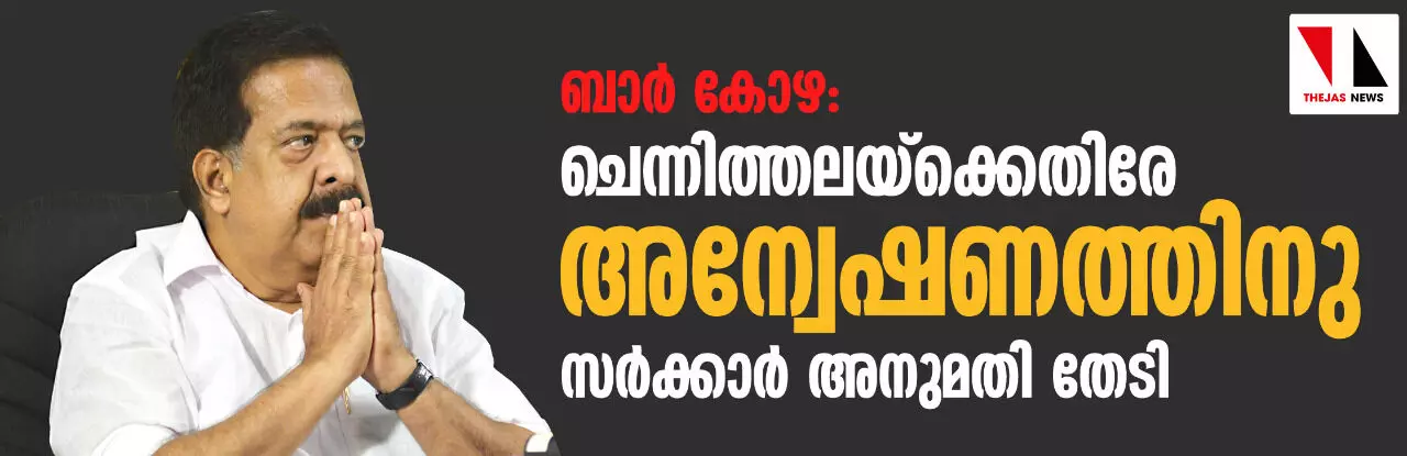 ബാര് കോഴ: ചെന്നിത്തലയ്ക്കെതിരേ അന്വേഷണത്തിനു സര്ക്കാര് അനുമതി തേടി