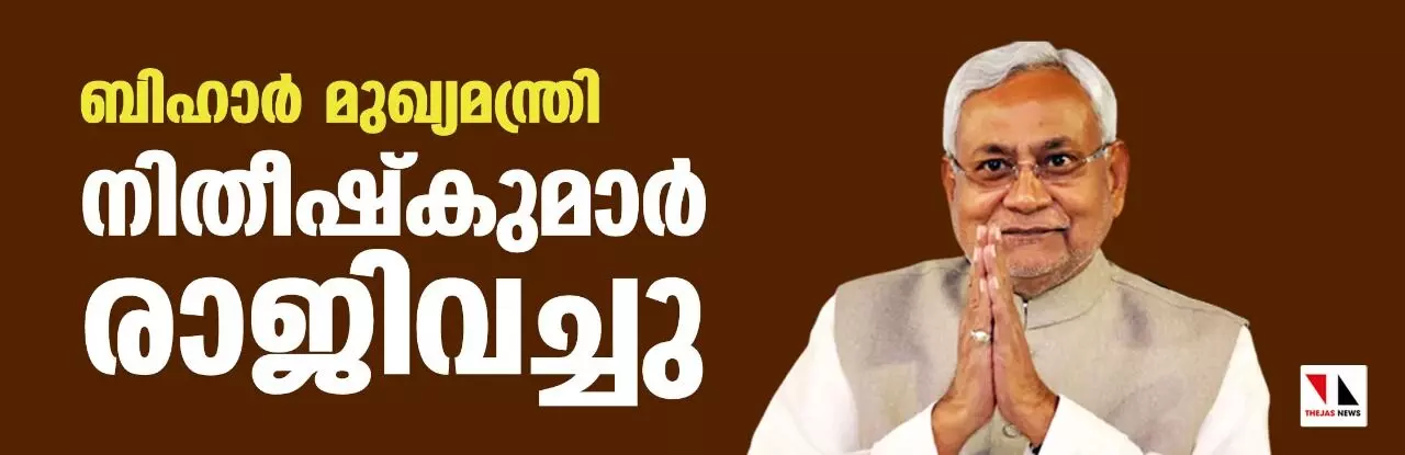 പട്ന: ബീഹാര് മുഖ്യമന്ത്രി നിതീഷ് കുമാര് രാജി സമര്പ്പിച്ചു. ഇന്ന് ഉച്ചയോടെയാണ് നിതീഷ് ഗവര്ണറെ നേരില്കണ്ട് രാജിക്കത്ത് നല്കിയത്. സ്ഫോടനാത്മകമായ വാര്ത്തകള് വരാനിരിക്കുന്നുണ്ടെന്ന് രാവിലെ ജെഡി(യു) നേതാക്കള് മാധ്യമങ്ങളോട് സൂചിപ്പിച്ചിരുന്നു.