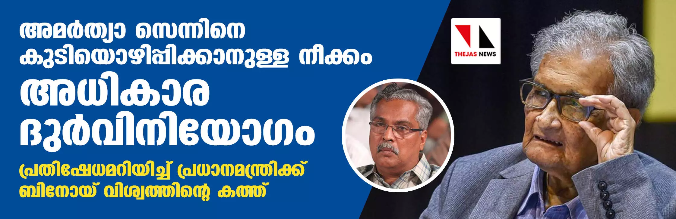 അമര്ത്യാ സെന്നിനെ കുടിയൊഴിപ്പിക്കാനുള്ള നീക്കം അധികാര ദുര്വിനിയോഗം: പ്രതിഷേധമറിയിച്ച് പ്രധാനമന്ത്രിയ്ക്ക് ബിനോയ് വിശ്വത്തിന്റെ കത്ത്