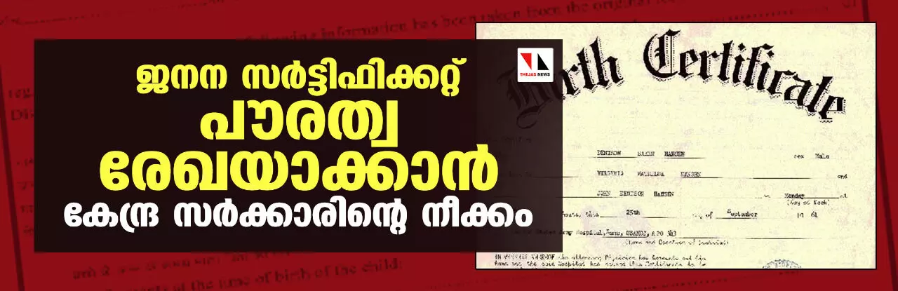 ജനന സർട്ടിഫിക്കറ്റ് പൗരത്വ രേഖയാക്കാൻ കേന്ദ്ര സർക്കാരിന്റെ നീക്കം