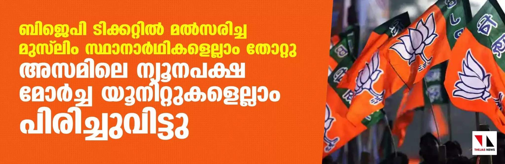 ബിജെപി ടിക്കറ്റില് മല്സരിച്ച മുസ്ലിം സ്ഥാനാര്ഥികളെല്ലാം തോറ്റു; അസമിലെ ന്യൂനപക്ഷ മോര്ച്ച യൂനിറ്റുകളെല്ലാം പിരിച്ചുവിട്ടു