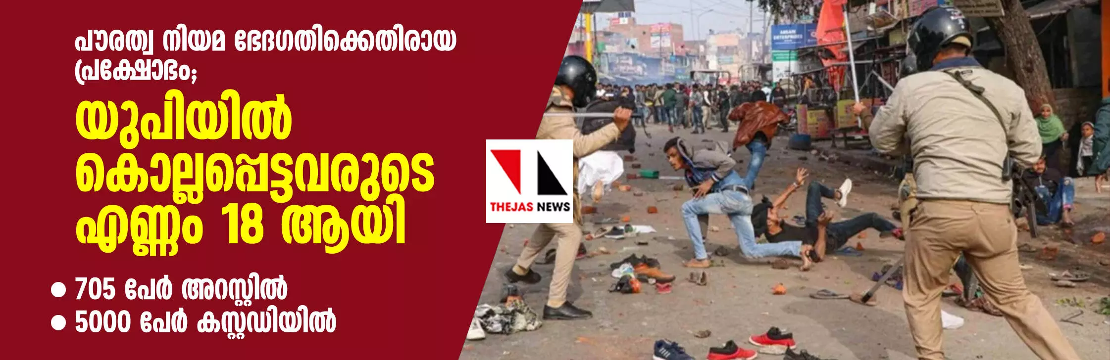 പൗരത്വ നിയമ ഭേദഗതിക്കെതിരായ പ്രക്ഷോഭം; യുപിയില് കൊല്ലപ്പെട്ടവരുടെ എണ്ണം 18 ആയി, 705 പേര് അറസ്റ്റില്, 5000 പേര് കസ്റ്റഡിയില്