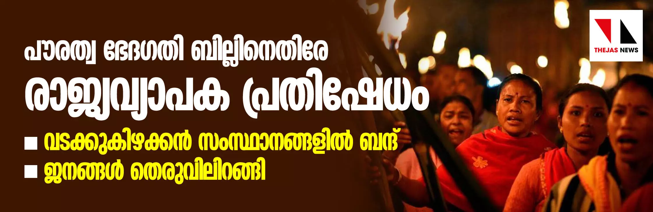 പൗരത്വ ഭേദഗതി ബില്ലിനെതിരേ രാജ്യവ്യാപക പ്രതിഷേധം; വടക്കുകിഴക്കന് സംസ്ഥാനങ്ങളില് ബന്ദ് -ജനങ്ങള് തിരുവിലിറങ്ങി