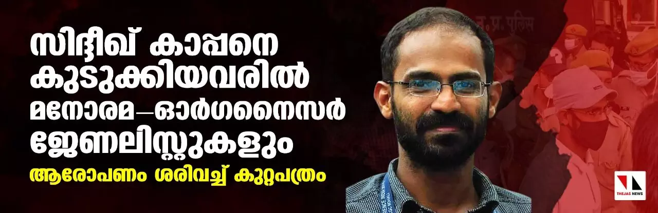 സിദ്ദീഖ് കാപ്പനെ കുടുക്കിയവരിൽ മനോരമ -ഓര്ഗനൈസര് ജേണലിസ്റ്റുകളും; ആരോപണം ശരിവച്ച് കുറ്റപത്രം