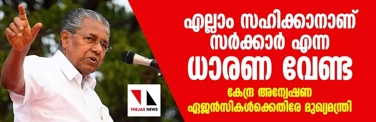 എല്ലാം സഹിക്കാനാണ് സര്ക്കാര് എന്ന ധാരണ വേണ്ട; കേന്ദ്ര അന്വേഷണ ഏജന്സികള്ക്കെതിരേ മുഖ്യമന്ത്രി