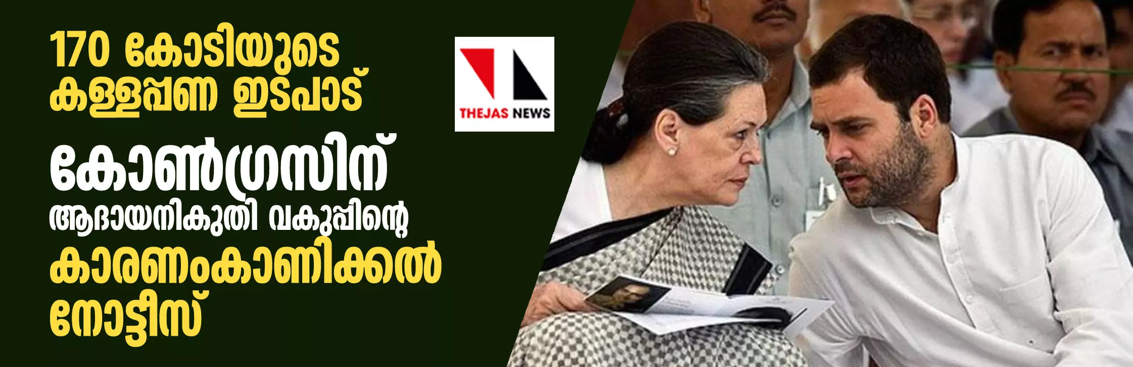 170 കോടിയുടെ കള്ളപ്പണ ഇടപാട്: കോണ്ഗ്രസിന് ആദായനികുതി വകുപ്പിന്റെ കാരണംകാണിക്കല് നോട്ടീസ്