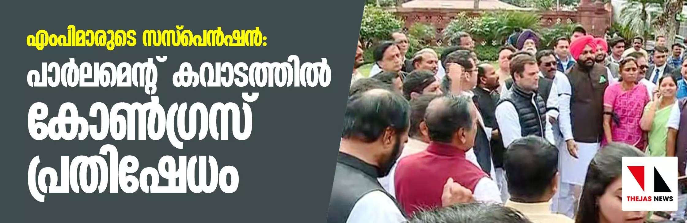 എംപിമാരുടെ സസ്പെന്ഷന്: പാര്ലമെന്റ് കവാടത്തില് കോണ്ഗ്രസ് പ്രതിഷേധം