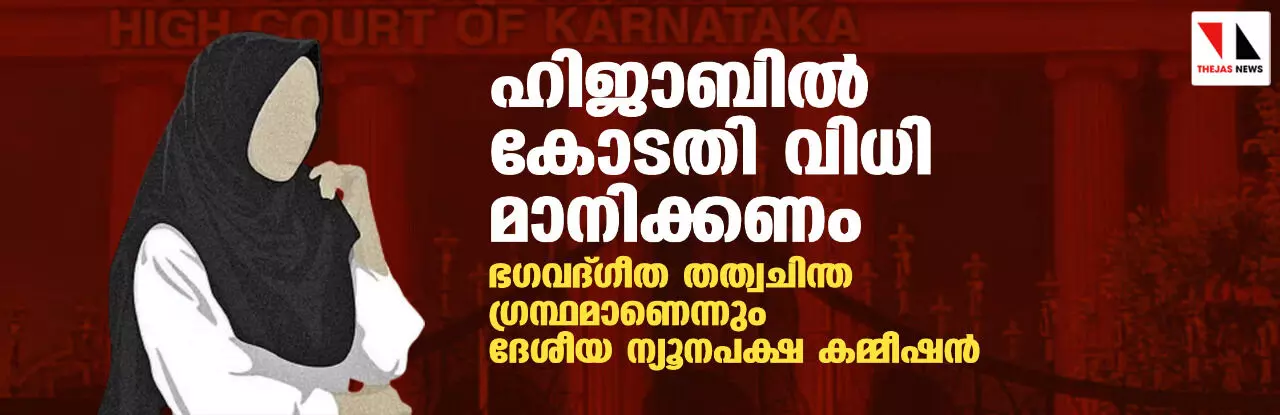 ഹിജാബില് കോടതി വിധി മാനിക്കണം; ഭഗവദ്ഗീത തത്വചിന്ത ഗ്രന്ഥമാണെന്നും ദേശീയ ന്യൂനപക്ഷ കമ്മീഷന്