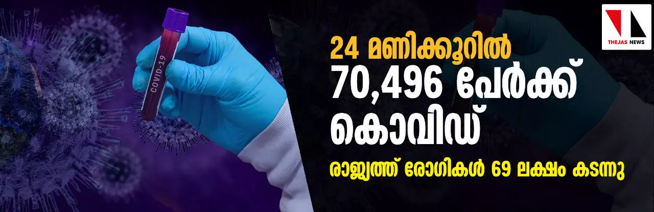 24 മണിക്കൂറിൽ 70,496 പേർക്ക് കൊവിഡ് ; രാജ്യത്ത് രോഗികൾ 69 ലക്ഷം കടന്നു