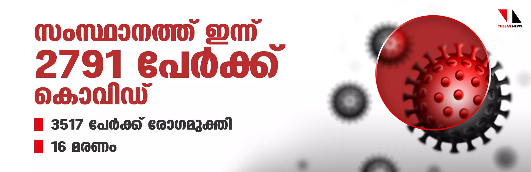 കേരളത്തില് ഇന്ന് 2791 പേര്ക്ക് കൊവിഡ്