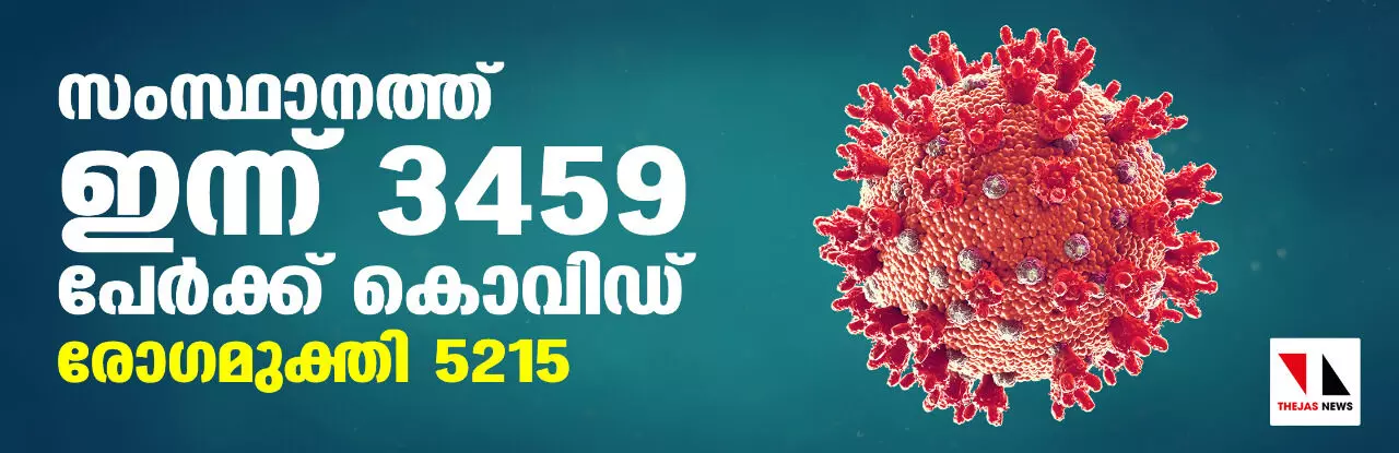 സംസ്ഥാനത്ത് ഇന്ന് 3459 പേര്ക്ക് കൊവിഡ്: 5215 പേര്ക്ക് രോഗമുക്തി; 3136 പേര്ക്ക് സമ്പര്ക്കത്തിലൂടെ രോഗം