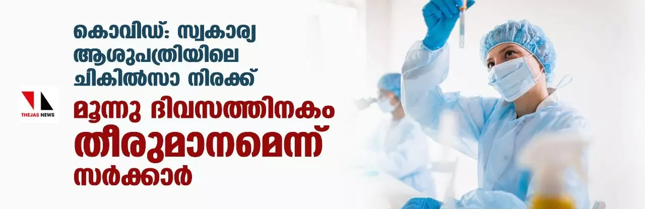 കൊവിഡ്:സ്വകാര്യ ആശുപത്രിയിലെ ചികില്സാ നിരക്ക്; മൂന്നു ദിവസത്തിനകം തീരുമാനമെന്ന് സര്ക്കാര്
