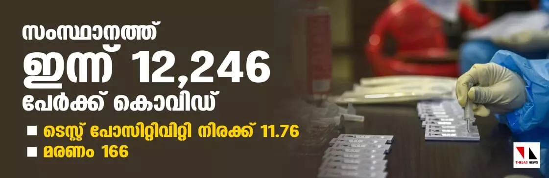സംസ്ഥാനത്ത് ഇന്ന് 12,246 പേര്ക്ക് കൊവിഡ്; ടെസ്റ്റ് പോസിറ്റിവിറ്റി നിരക്ക് 11.76; മരണം 166