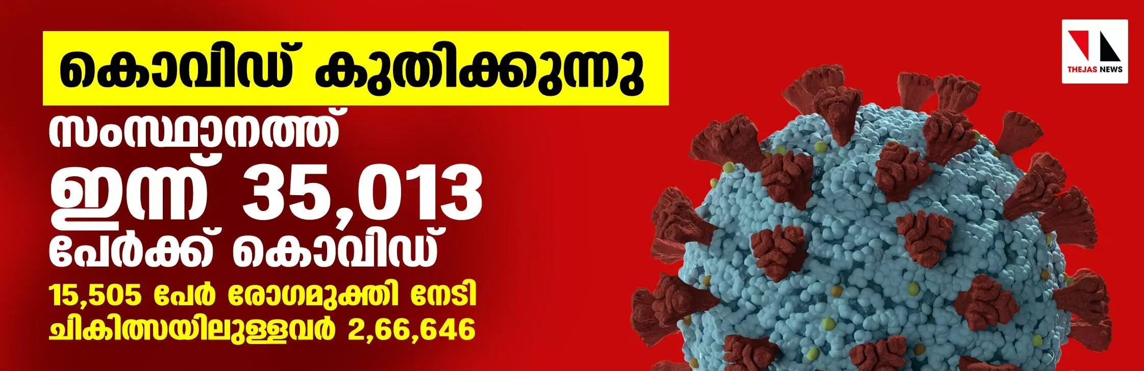 സംസ്ഥാനത്ത് കൊവിഡ് കുതിക്കുന്നു; ഇന്ന് 35013 പേര്ക്ക് കൊവിഡ്; ചികിത്സയിലുള്ളവര് 2,66,646