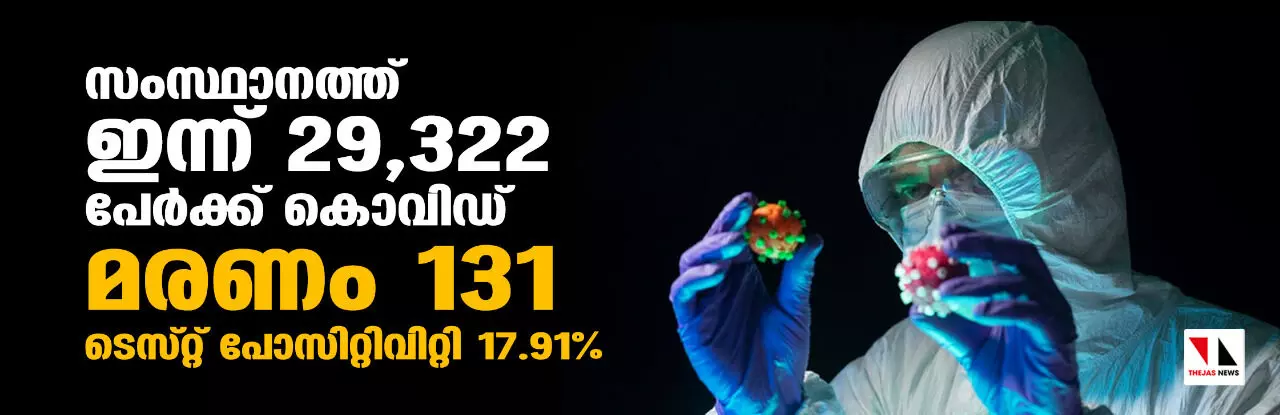 സംസ്ഥാനത്ത് ഇന്ന് 29,322 പേര്ക്ക് കൊവിഡ്; ടെസ്റ്റ് പോസിറ്റിവിറ്റി നിരക്ക് 17.91; മരണം 131