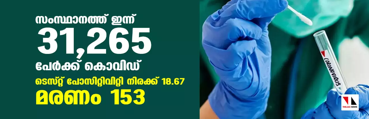 സംസ്ഥാനത്ത് ഇന്ന് 31,265 പേര്ക്ക് കൊവിഡ്; ടെസ്റ്റ് പോസിറ്റിവിറ്റി നിരക്ക് 18.67; മരണം 153