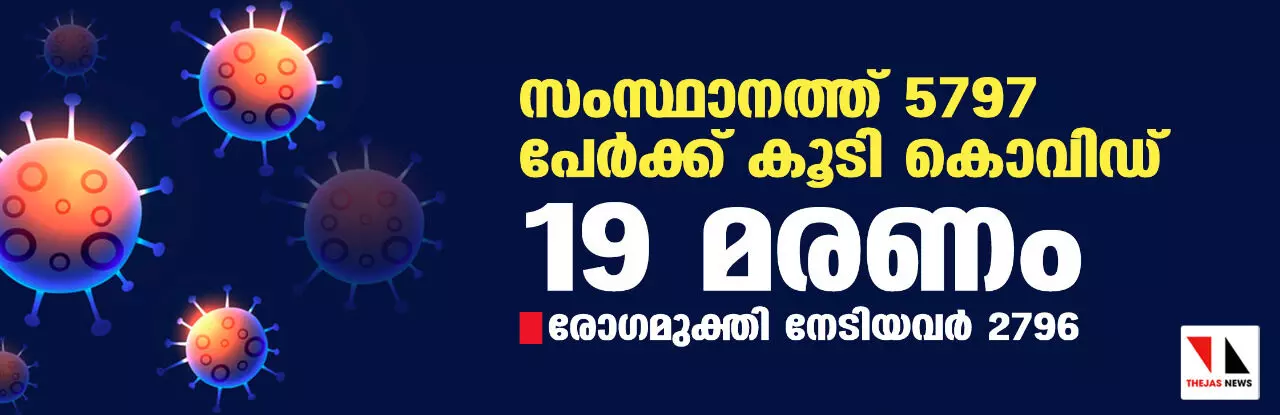 സംസ്ഥാനത്ത് ഇന്ന് 5797 പേര്ക്ക് കൊവിഡ്; മരണം 19; ആകെ മരണം 49,757