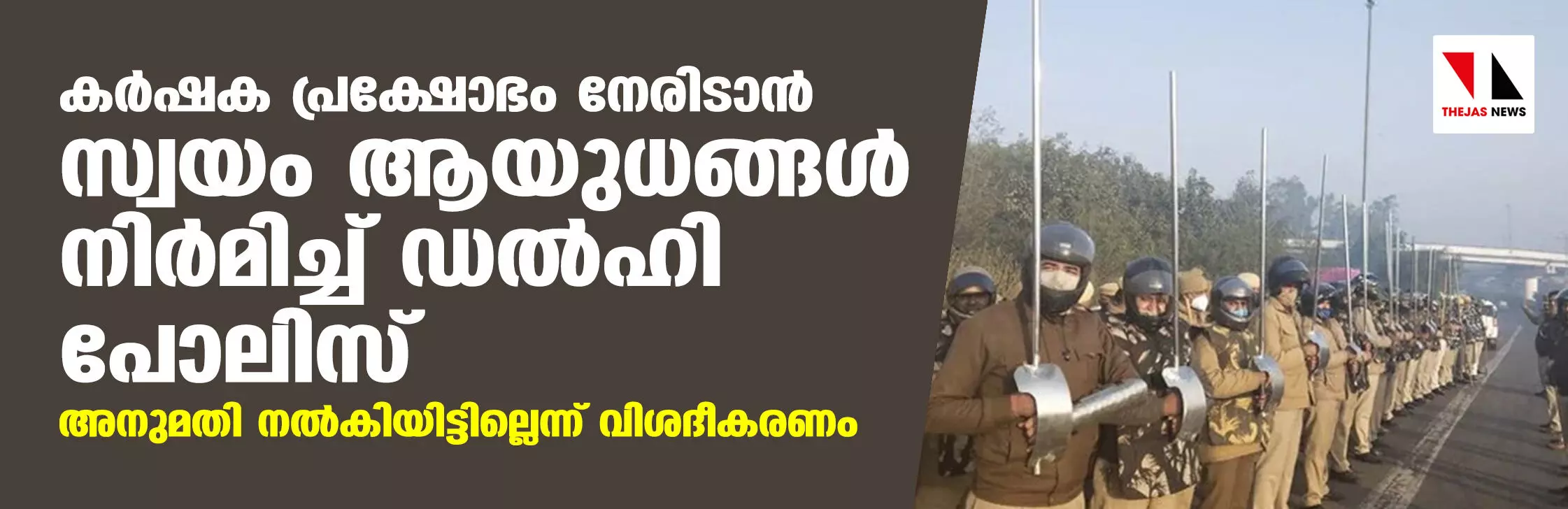 കര്ഷക പ്രക്ഷോഭം നേരിടാന് സ്വയം ആയുധങ്ങള് നിര്മിച്ച് ഡല്ഹി പോലിസ് : അനുമതി നല്കിയിട്ടില്ലെന്ന് വിശദീകരണം