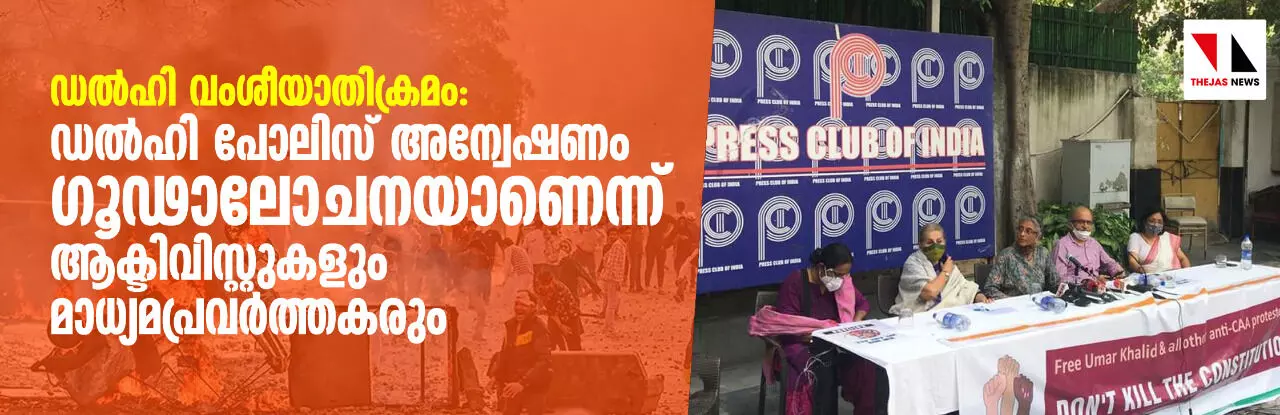 ഡൽഹി വംശീയാതിക്രമം: ഡൽഹി പോലിസ് അന്വേഷണം ഗൂഡാലോചനയാണെന്ന് ആക്ടിവിസ്റ്റുകളും മാധ്യമപ്രവർത്തകരും