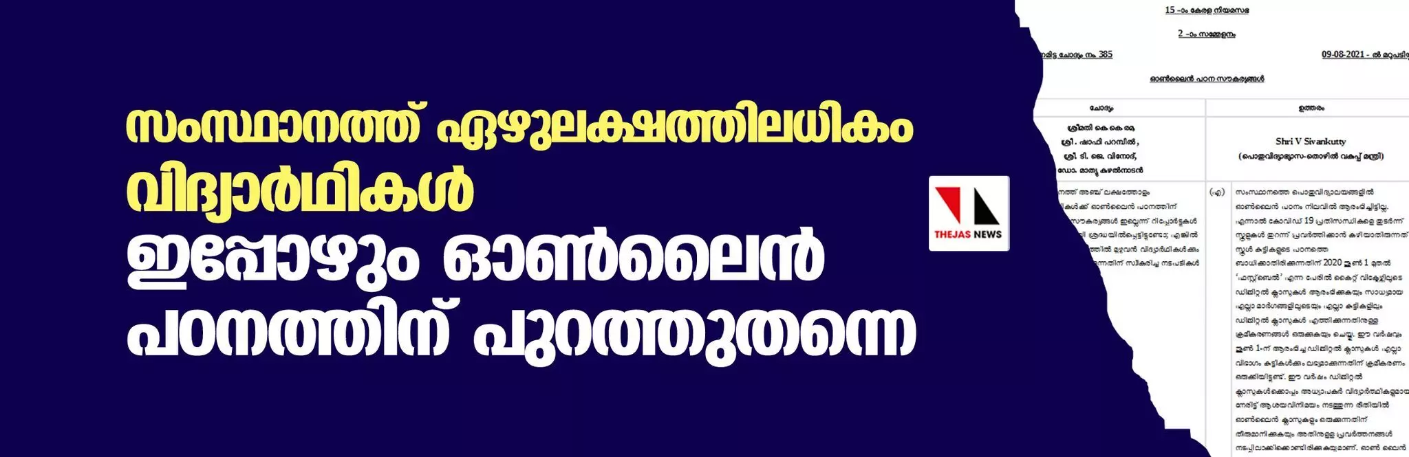സംസ്ഥാനത്ത് ഏഴുലക്ഷത്തിലധികം വിദ്യാർഥികൾ ഇപ്പോഴും ഓൺലൈൻ പഠനത്തിന് പുറത്തുന്നെ