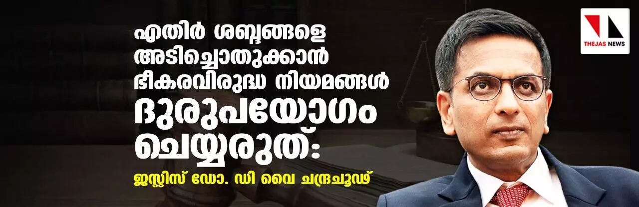 എതിര് ശബ്ദങ്ങളെ അടിച്ചൊതുക്കാന് ഭീകരവിരുദ്ധ നിയമങ്ങള് ദുരുപയോഗം ചെയ്യരുത്: ജസ്റ്റിസ് ഡോ. ഡി വൈ ചന്ദ്രചൂഢ്