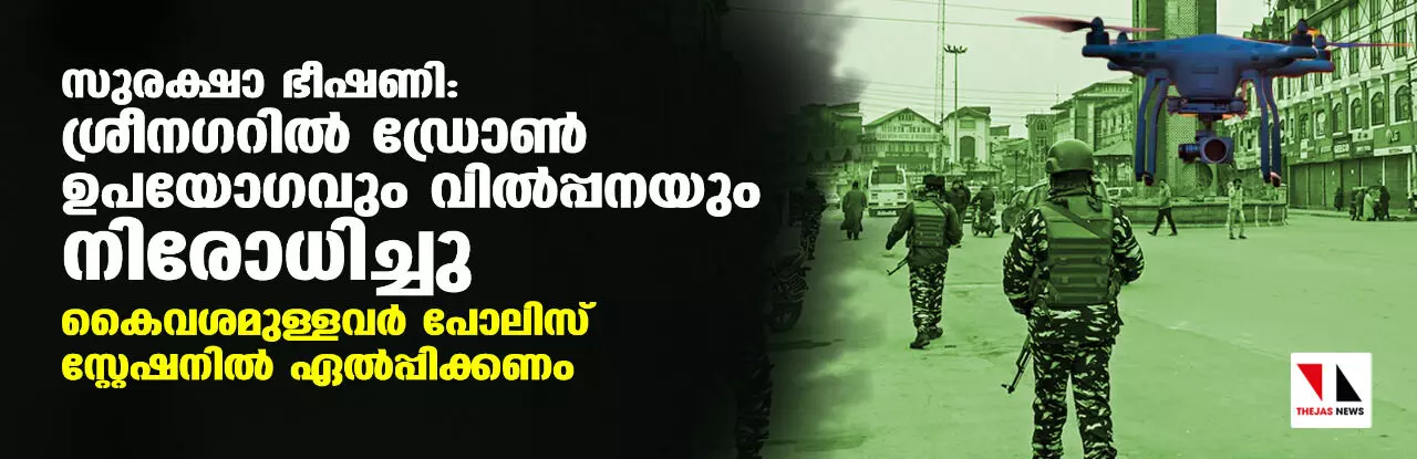 സുരക്ഷാ ഭീഷണി: ശ്രീനഗറില് ഡ്രോണ് ഉപയോഗവും വില്പ്പനയും നിരോധിച്ചു; കൈവശമുള്ളവര് പോലിസ് സ്റ്റേഷനില് ഏല്പ്പിക്കണം