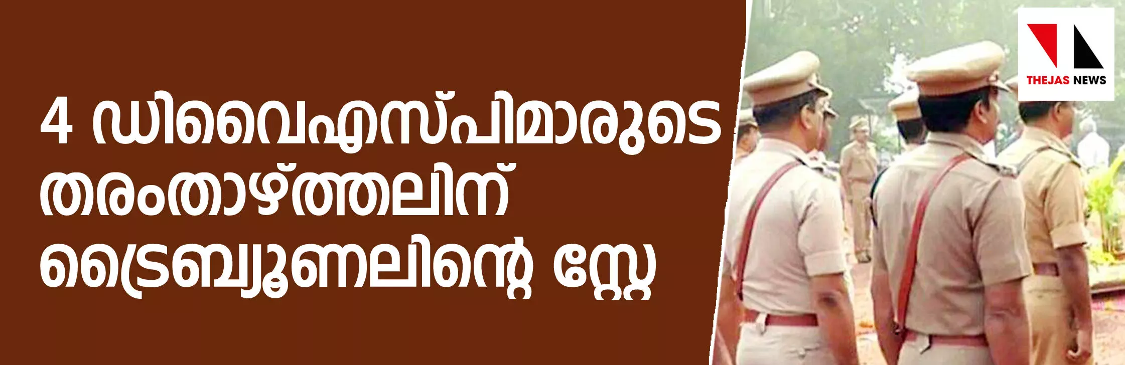നാലു ഡിവൈഎസ്പിമാരുടെ തരംതാഴ്ത്തല് അഡ്മിനിസ്ട്രേറ്റീവ് ട്രൈബ്യൂണല് സ്റ്റേ ചെയ്തു