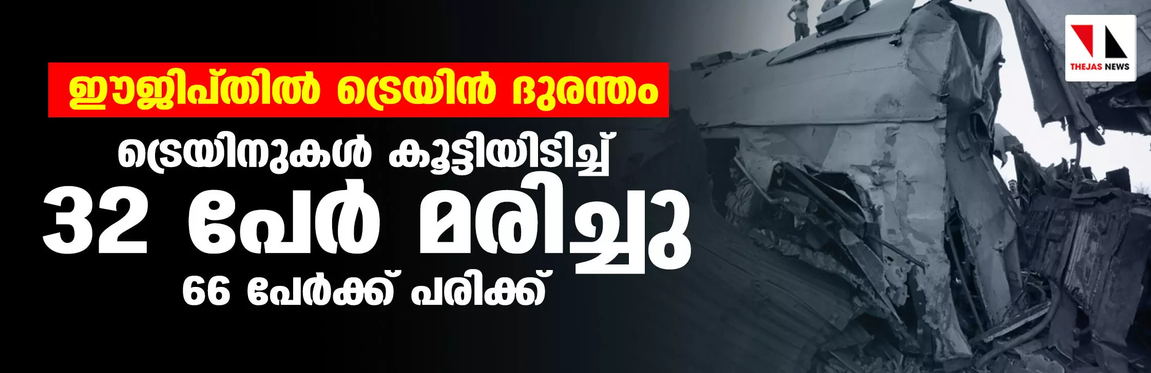 ഈജിപ്തില് ട്രെയിന് ദുരന്തം; ട്രെയിനുകള് കൂട്ടിയിടിച്ച് 32 പേര് മരിച്ചു, 66 പേര്ക്ക് പരിക്ക്