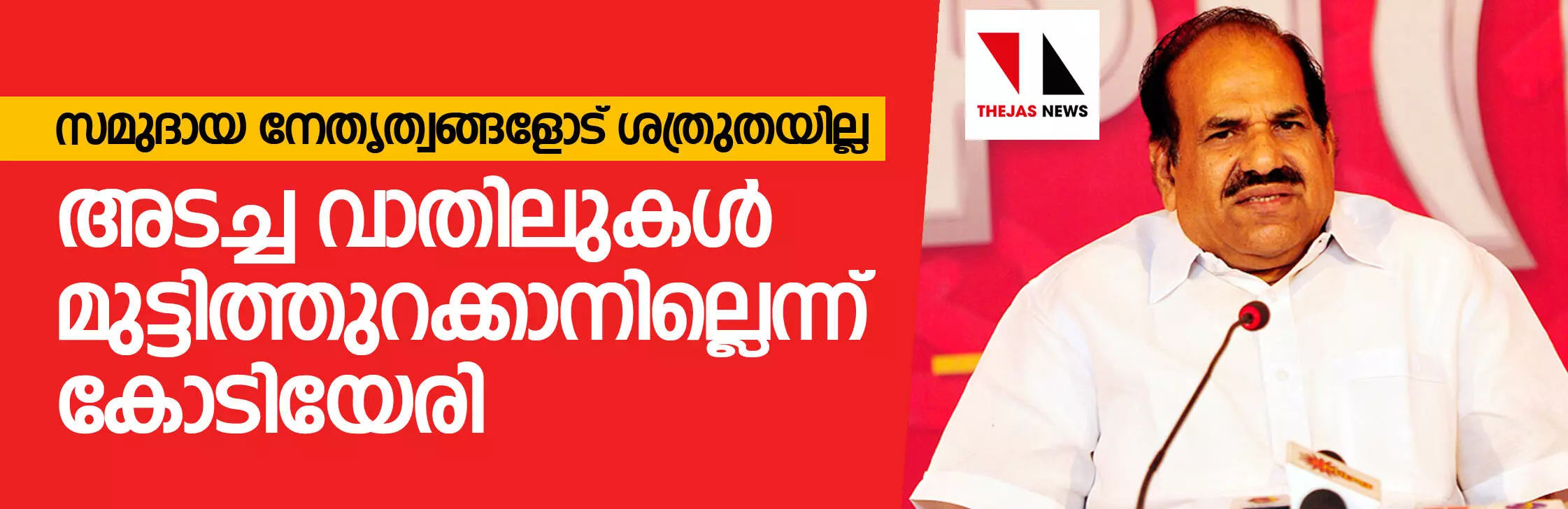 സമുദായ നേതൃത്വങ്ങളോട് ശത്രുതയില്ല; അടച്ച വാതിലുകള് മുട്ടിത്തുറക്കാനില്ലെന്ന് കോടിയേരി