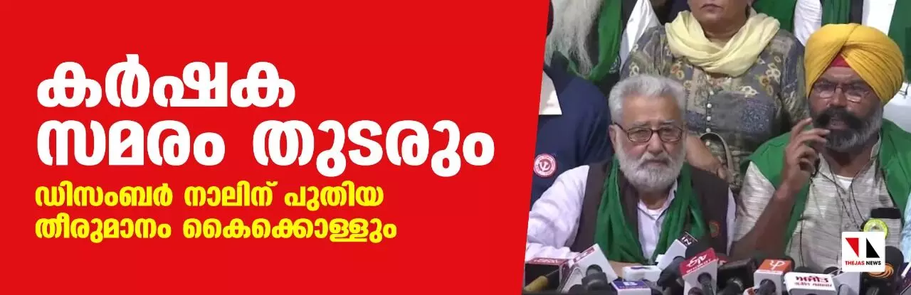 കര്ഷക സമരം തുടരും; ഡിസംബര് നാലിന് പുതിയ തീരുമാനം കൈക്കൊള്ളും