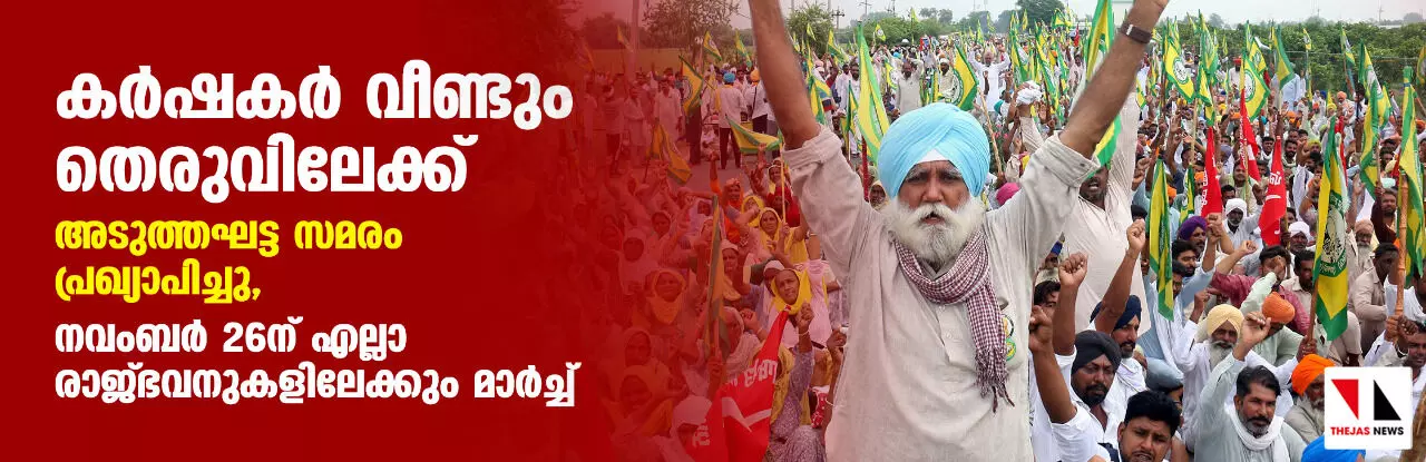 കർഷകർ വീണ്ടും തെരുവിലേക്ക്; അടുത്ത ഘട്ട സമരം പ്രഖ്യാപിച്ചു, നവംബർ 26 ന് എല്ലാ രാജ്ഭവനുകളിലേക്കും മാർച്ച്